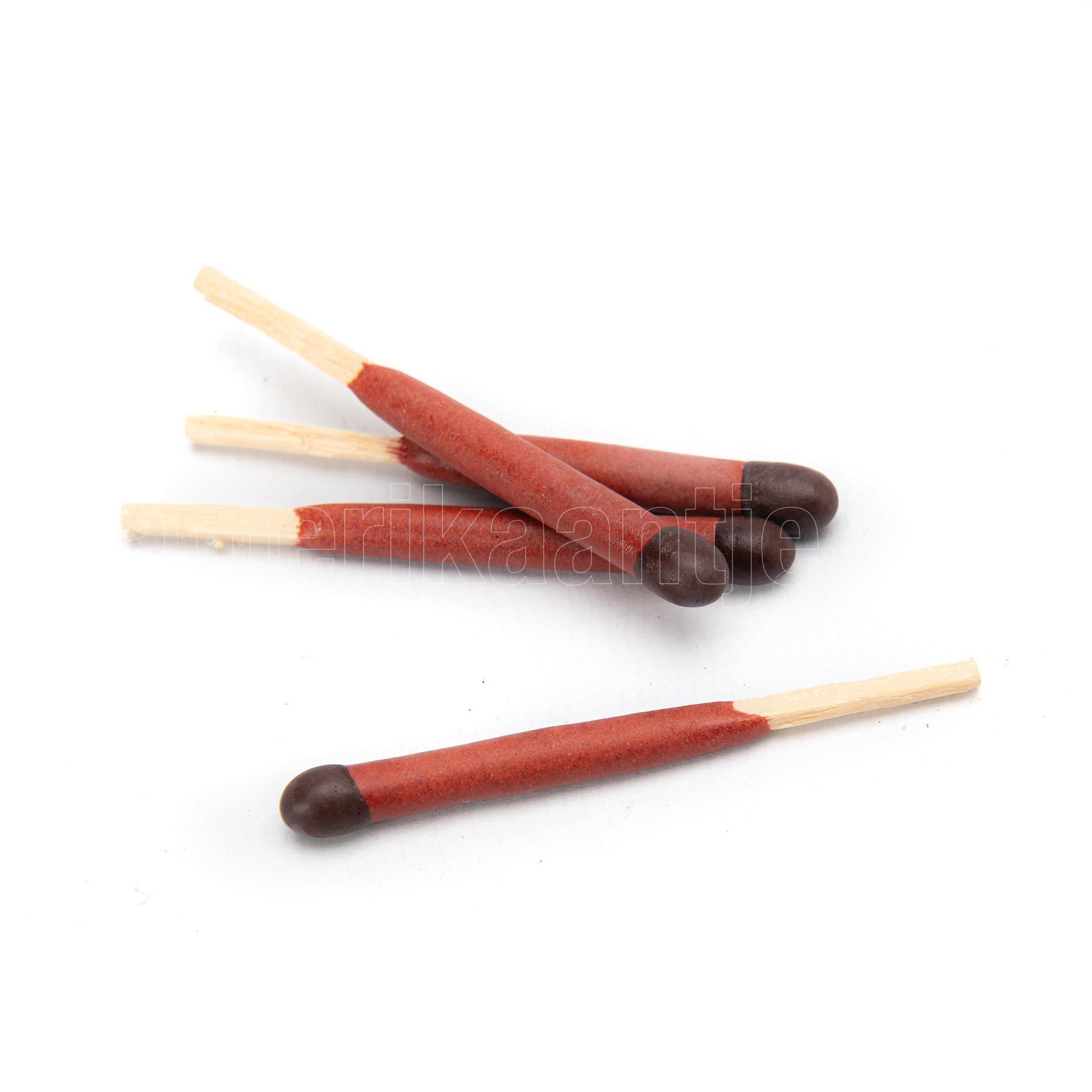 These matches have extra-long heads and will keep burning even in high winds and rain. Hand-dipped and lacquered